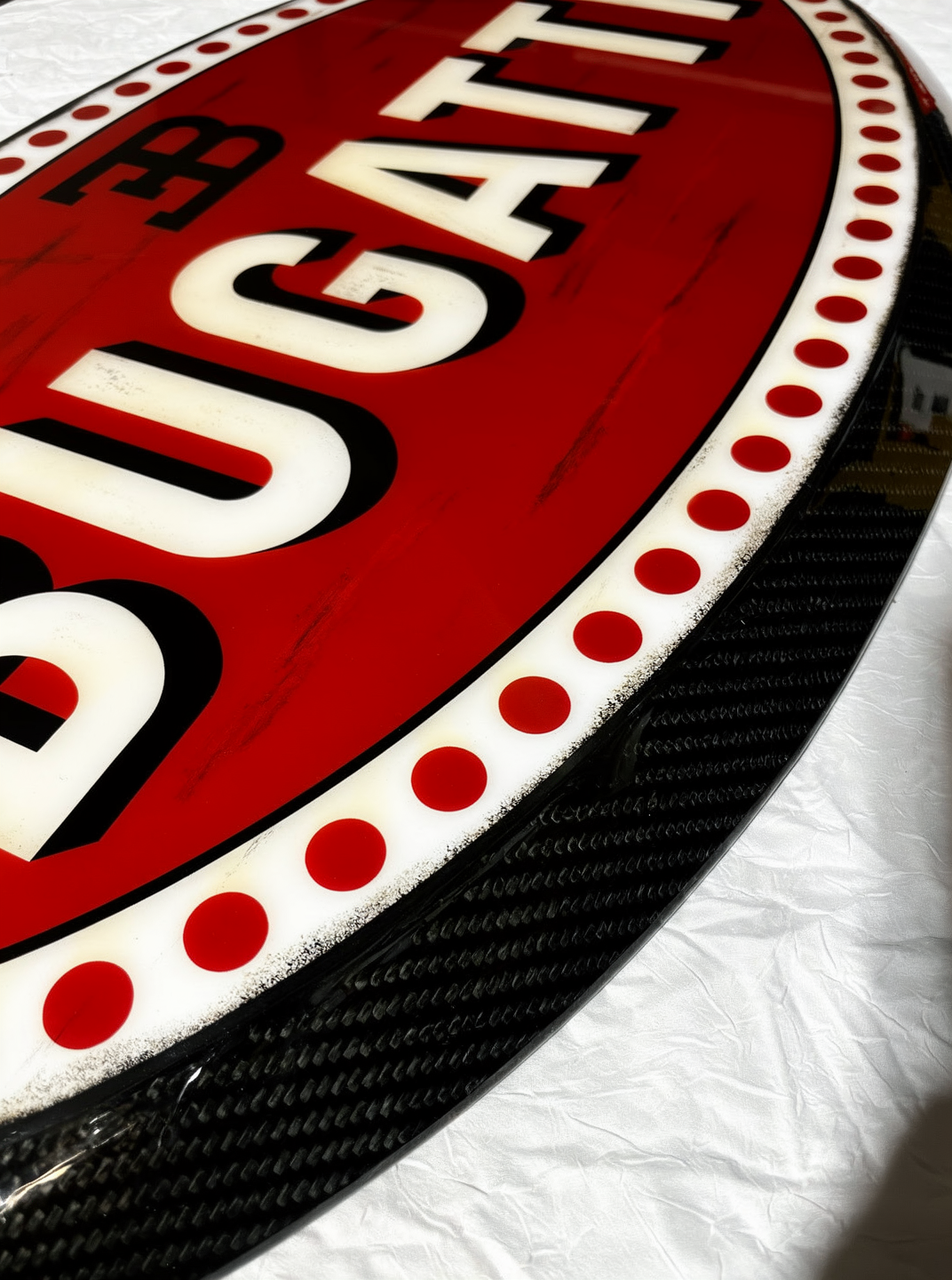 Un hommage élégant à l’audace, au raffinement et à l’excellence mécanique incarnés par une vision automobile d’exception. Réalisée en fibre de carbone, chaque pièce est sublimée par une photographie à l’esthétique volontairement vieillie, puis protégée par une résine époxy polylustrée offrant profondeur, brillance et intemporalité.