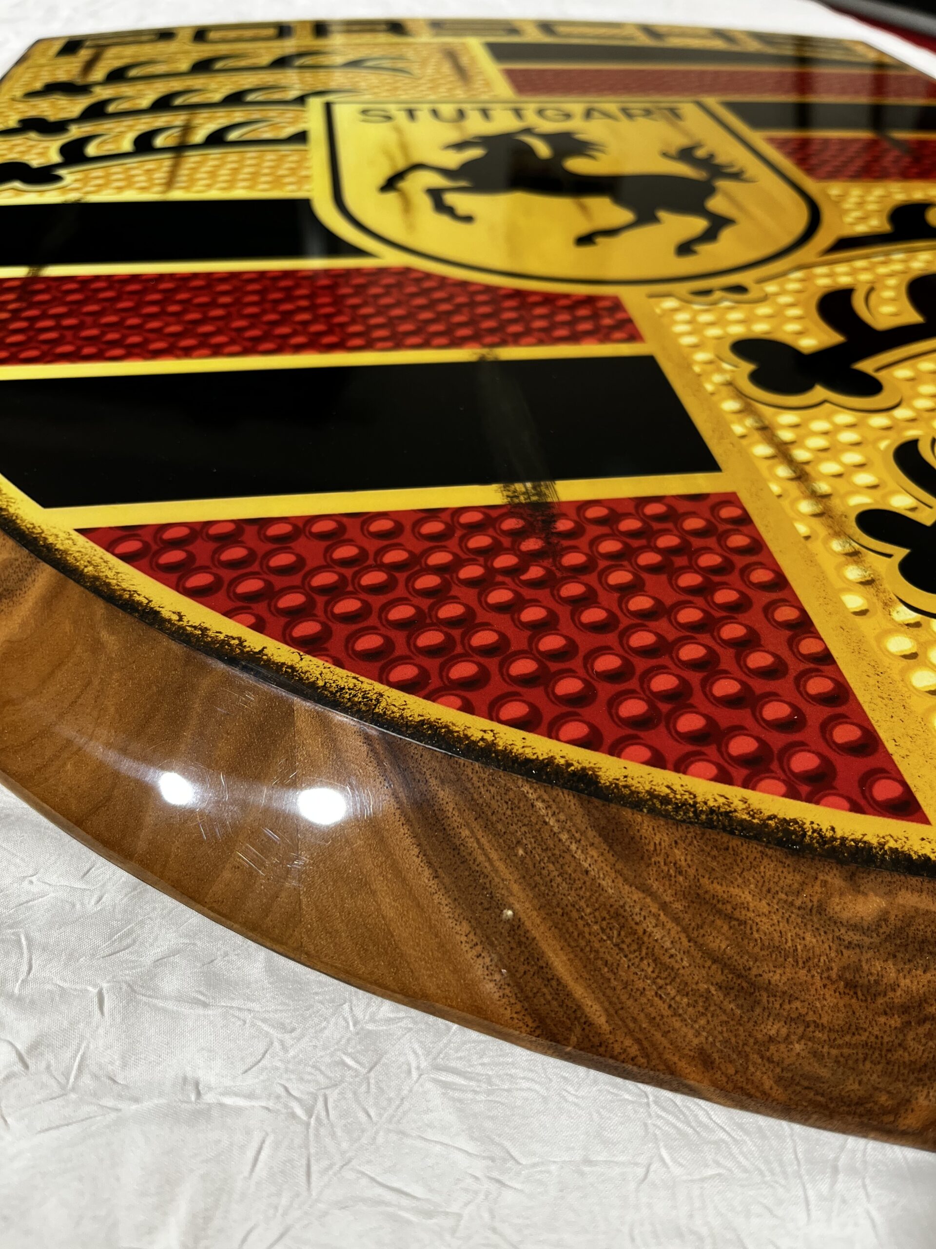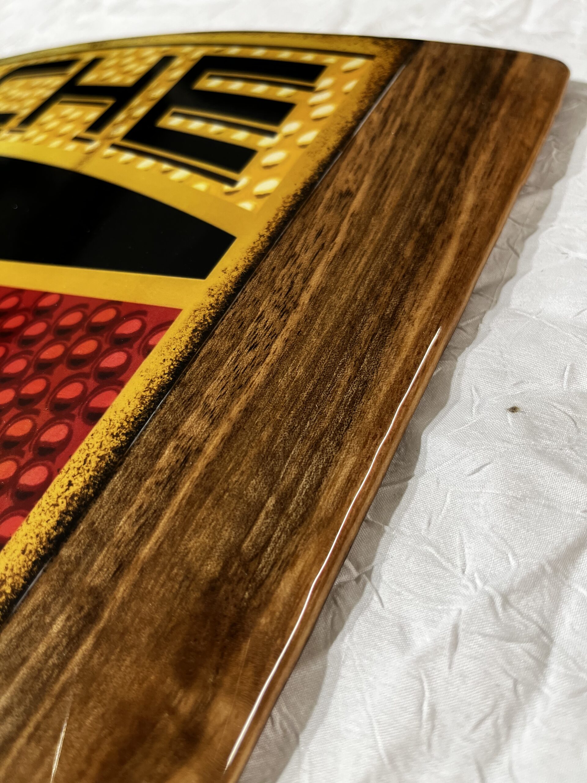 Un hommage raffiné à l’héritage sportif et à l’ingénierie d’exception de la ville mythique allemande. Réalisée sur bois, chaque pièce est magnifiée par une photographie à l’esthétique volontairement vieillie, puis protégée par une résine époxy polylustrée offrant profondeur, éclat et pérennité.