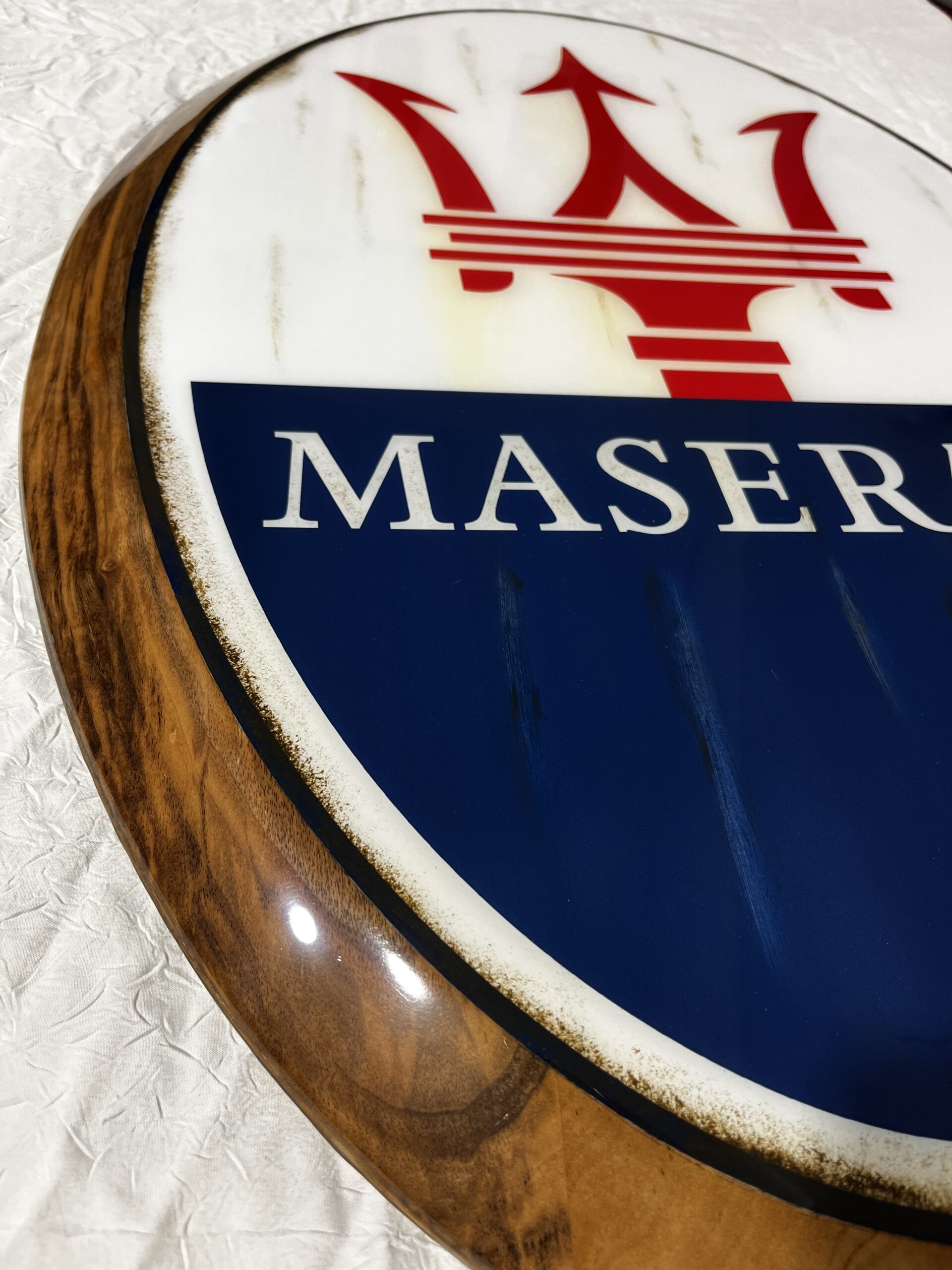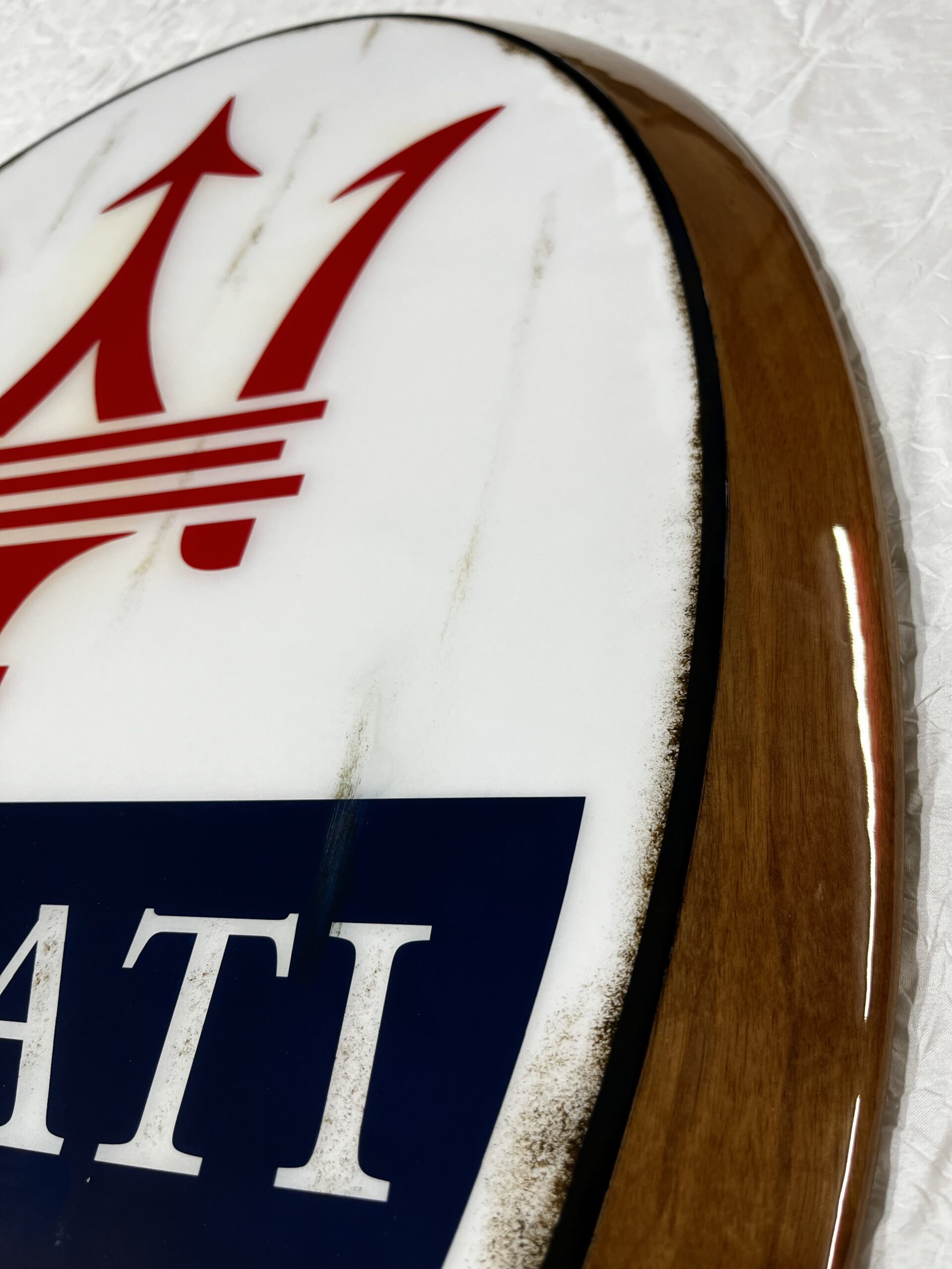 Un hommage racé à la noblesse italienne, à la sportivité instinctive et à l’équilibre parfait entre puissance et raffinement. Symbole d’une vision automobile guidée par le caractère et l’émotion, chaque pièce est réalisée sur bois, sublimée par une photographie à l’esthétique volontairement vieillie, puis protégée par une résine époxy polylustrée offrant profondeur, éclat et intemporalité.
